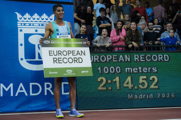 The Spanish runner clocks 2:14.52 and surpasses Wilson Kipketer's mark but falls…