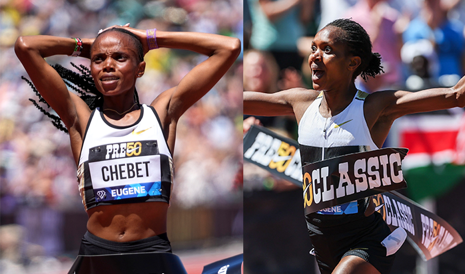 Chebet becomes the first woman in history to win 14 minutes for 5000m as Kipyegon improves her own 1500 m mark on a day of sizzling performances in the 50th Prefontaine Classic