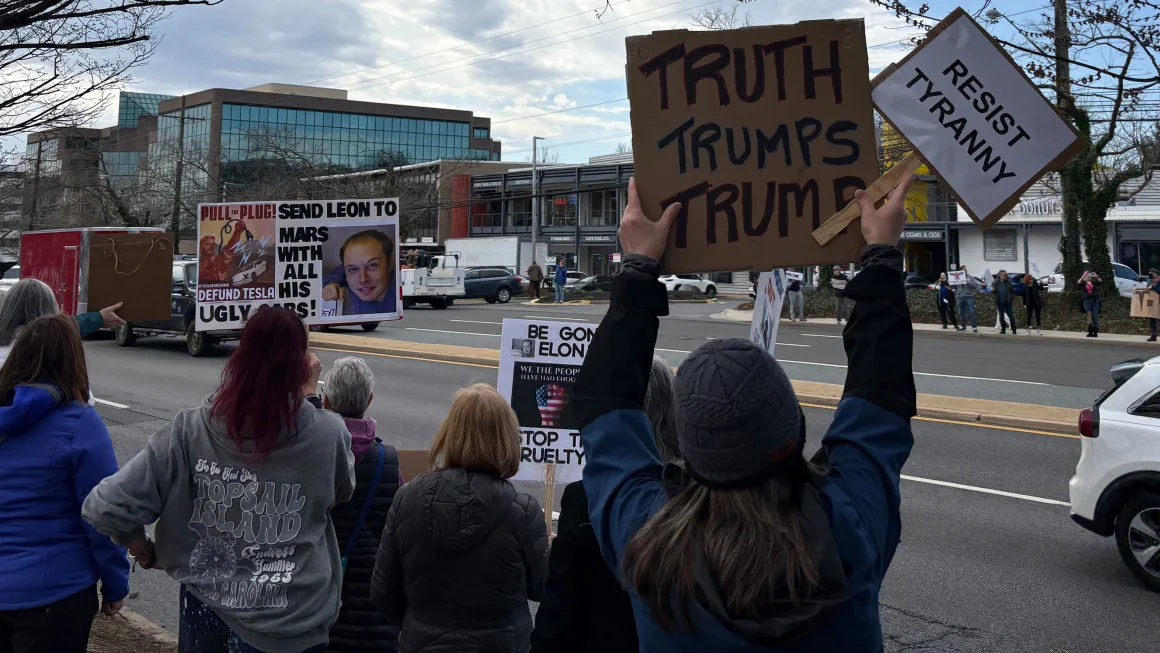 A demonstration that began at about 11 a.m. ET outside a Tesla showroom in Rockville, Maryland, drew a crowd of over 400 people — roughly the same attendance as last week but a sharp uptick since the start of the campaign, according to demonstrators who spoke to CNN.