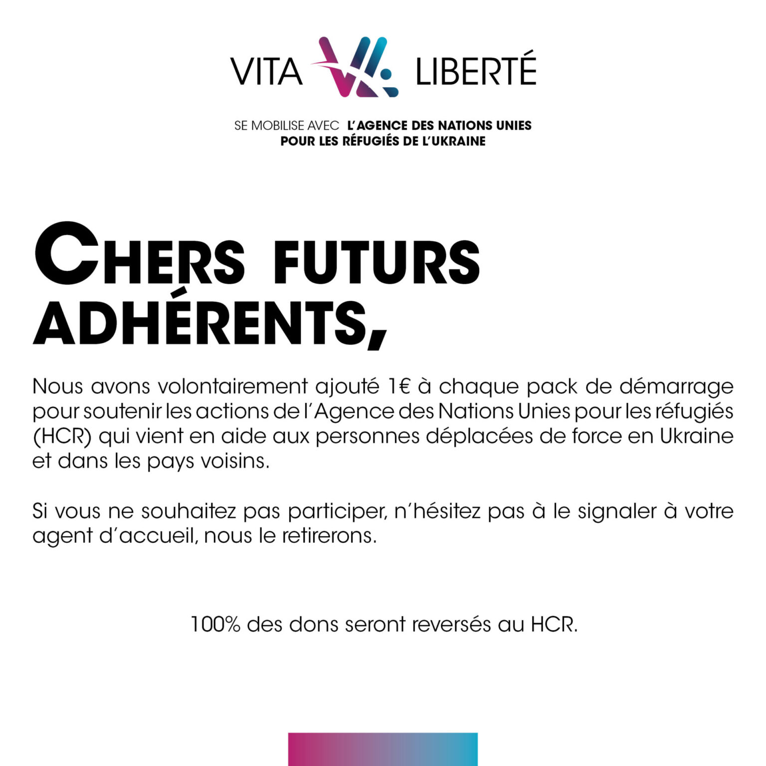 Cela pours, nous avons volontarification ajouté 1 € à chaque démarge pack of nos nouveaux clients pour soutenir les actions of l’Egen des nations unies unies pour les réfugiés (acnur)*.