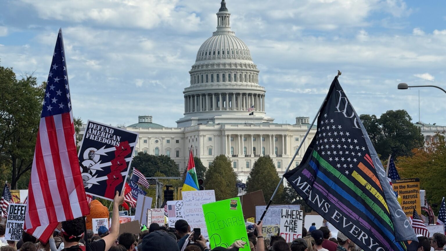 A rally more than a march, the “no kings“The protest centered on a stage set up on Pennsylvania Avenue with the U.S. Capitol in the background. The event comes as the Trump administration is increasingly willing to directly confront its political opponents using the various levers of state power, including the use of counterterrorism tools originally designed to fight foreign extremists against domestic targets, and through deployment the National Guard to main cities under federal authority.