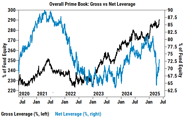 Hedge fund net exposure remains cautious, with significant short covering, though further upside potential exists if the market rally continues and hedge funds are forced to chase. (@dailychartbook)