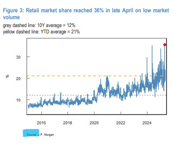 Retail trading market share peaked at a record 36% on April 28-29, significantly exceeding the year-to-date average of 21% and the long-term average of 12%. (@neilksethi)
