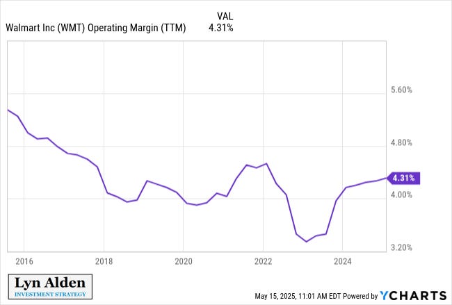 Walmart plans to raise prices due to tariffs impacting merchandise costs. CFO John David Rainey stated the rapid price increases are historically unprecedented. With narrow 4% operating margins, Walmart has no choice but to pass costs onto consumers. (@LynAldenContact)