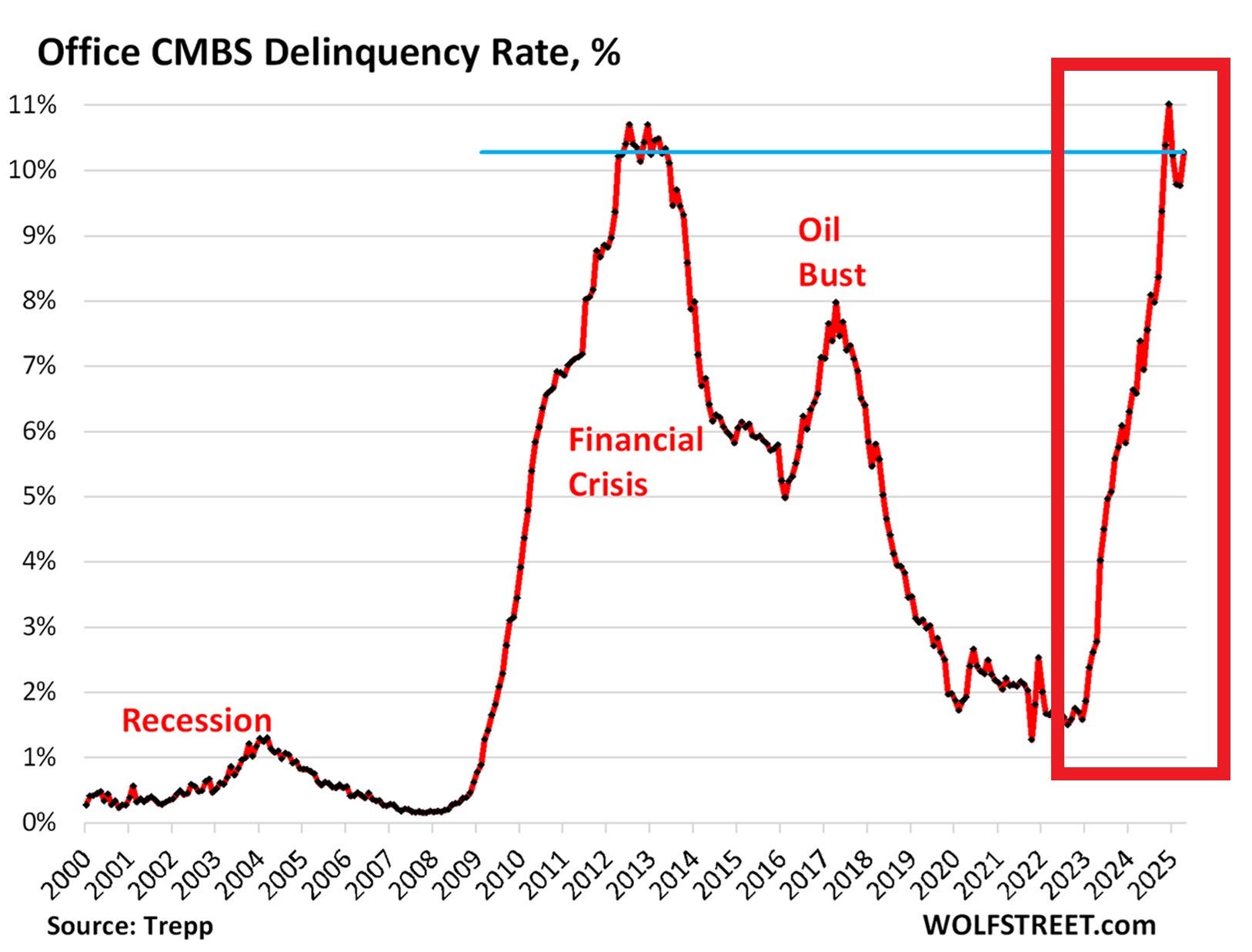 Office debt delinquencies remain at global financial crisis levels being hit by the double whammy of weak employment growth and higher rates. (@GlobalMktObserv)