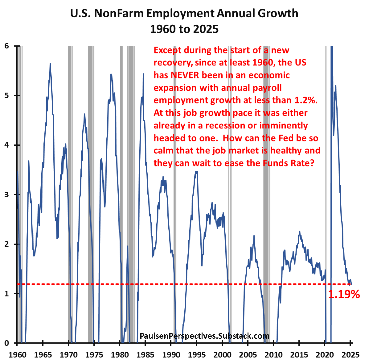 Employment growth does not paint a picture of US economic strength. (@jimwpaulsen)