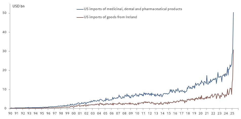 The healthcare industry was one of the major culprits of tariff front running. (@fwred)