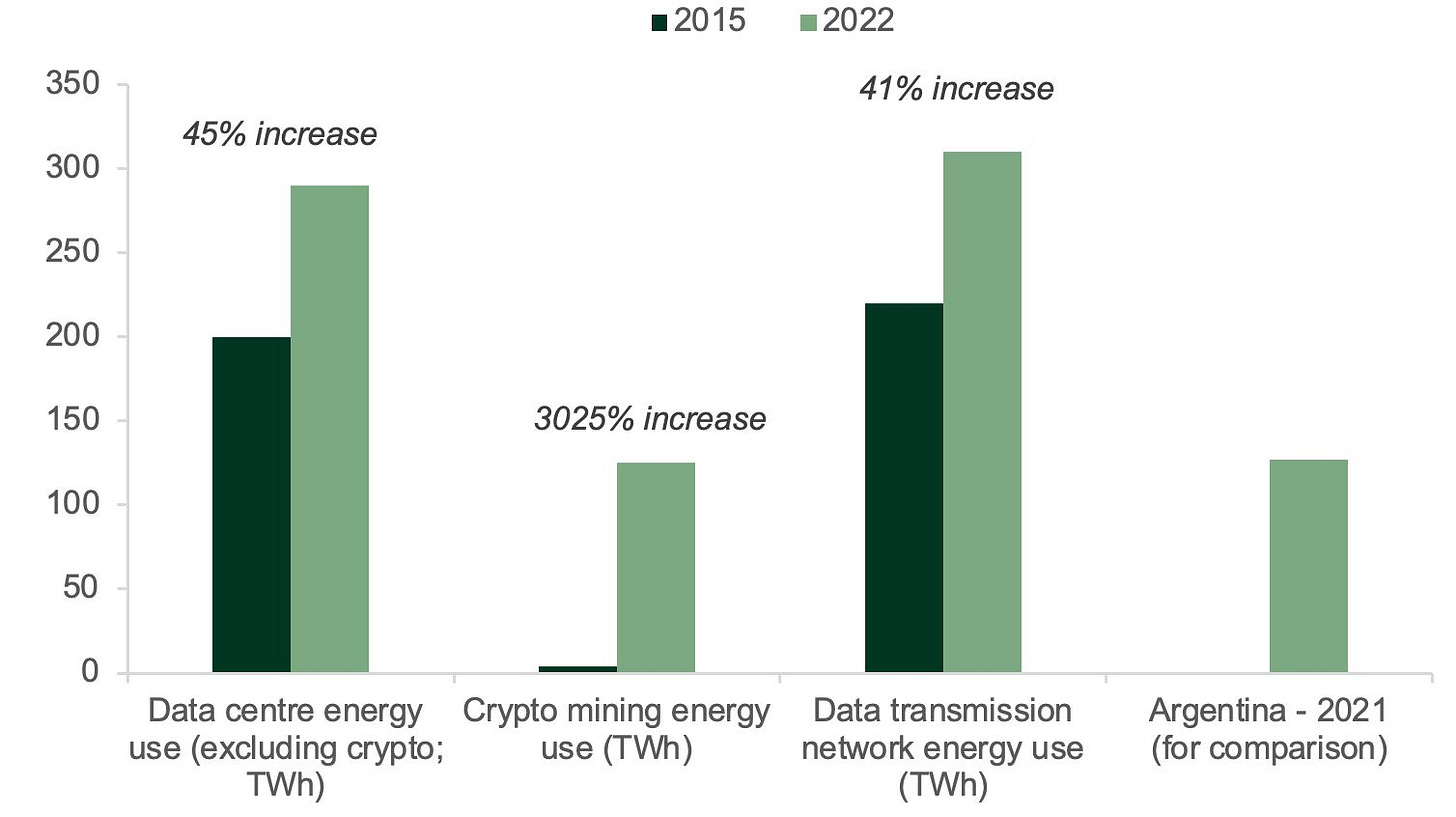The data economy has seen explosive electricity usage growth since 2015. These uses consume more electricity than some entire countries. ()