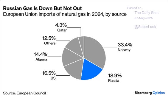The EU is still heavily reliant on Russian gas. (The Daily Shot)