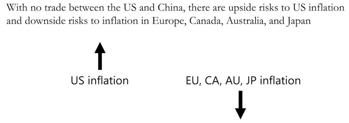 If the US doesnβt continue to unwind their chaotic approach to trade policy, we may see an interesting situation where inflation is rising in the US but other developed countries experience deflation. Ex-US could be a dumping ground for excess Chinese goods. (Apollo)