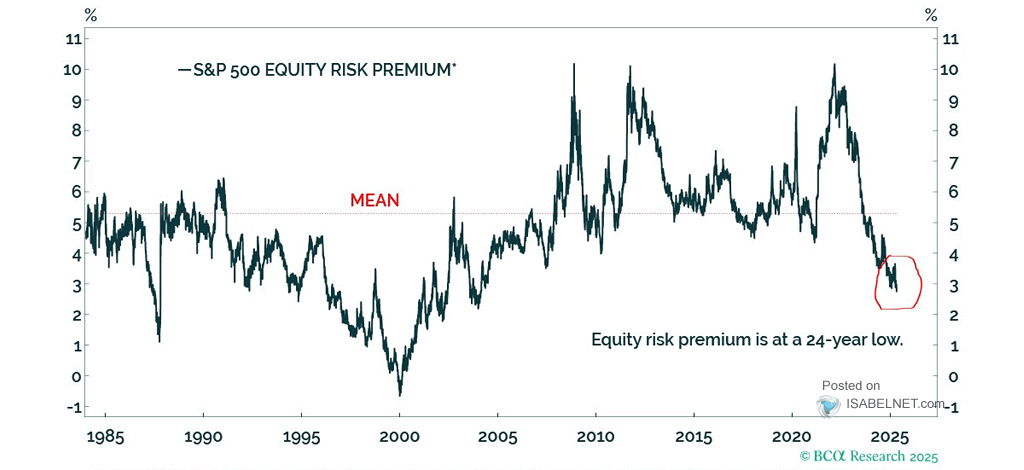 Equity risk premium is now at a 24 year low. Simplistically, this is a measure of equity attractiveness relative to bonds. (@ISABELNET_SA)