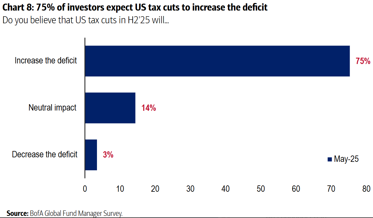 People have given up on budget discipline. 75% think Trump’s tax cuts will make the deficit worse. (BofA)