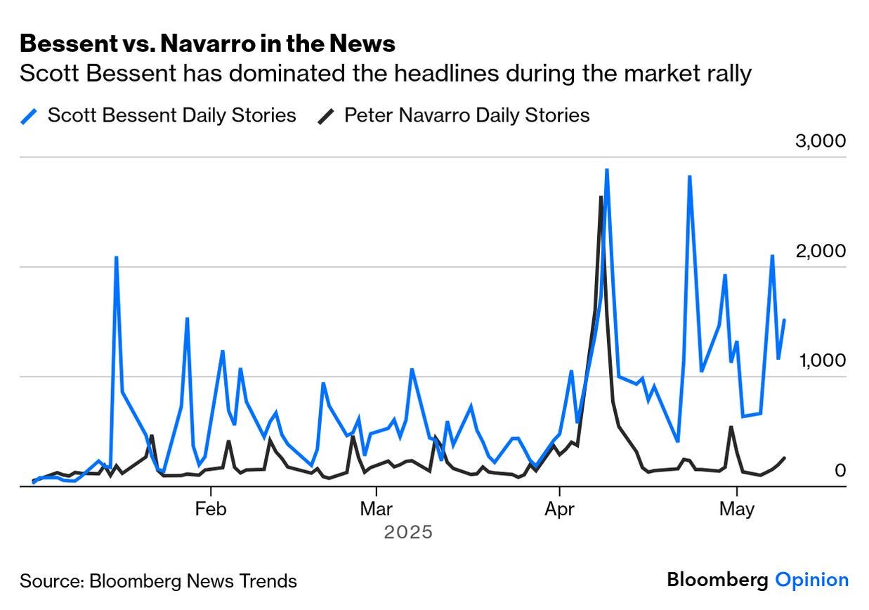Navarro had his moment but that was quickly taken away after the market crashed and Bessent became the steady voice of reason through the volatility. (John Authers)