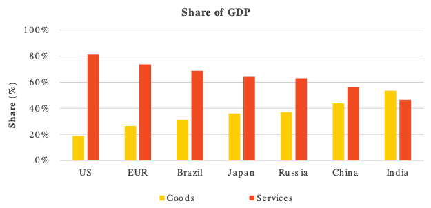 Worth remembering that the US is a service based economy and tariffs would only impact goods that are a much smaller portion of the economy. (Blackrock)