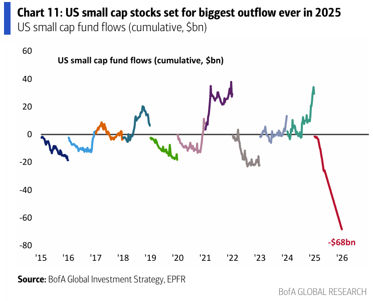 Investors have dumped small caps. (BofA)