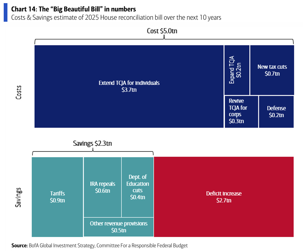 The funding gap created by Trump’s “Big Beautiful Bill” is the likely catalyst for the Moody’s downgrade. (BofA)
