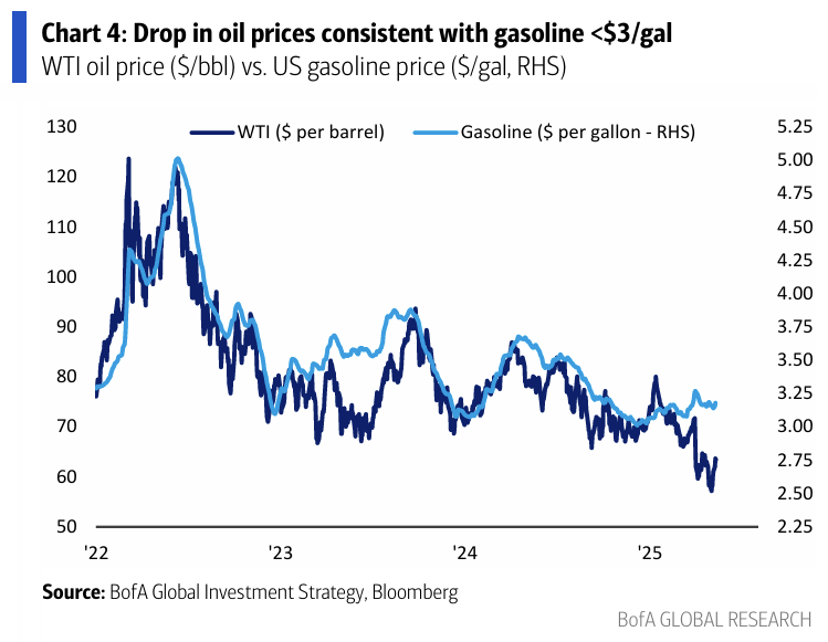 Good news for consumers, gas prices have room to fall. (BofA)