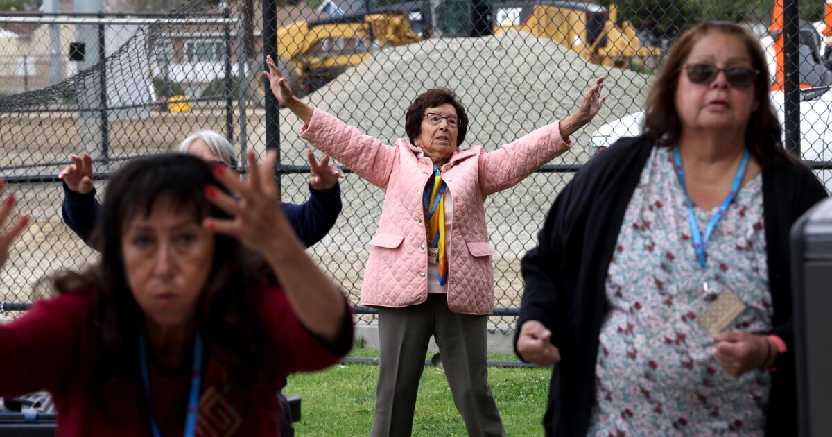 Rosa Maria Juárez meets other members of Pico Rivera Senior Center City Walkers before a walk.
