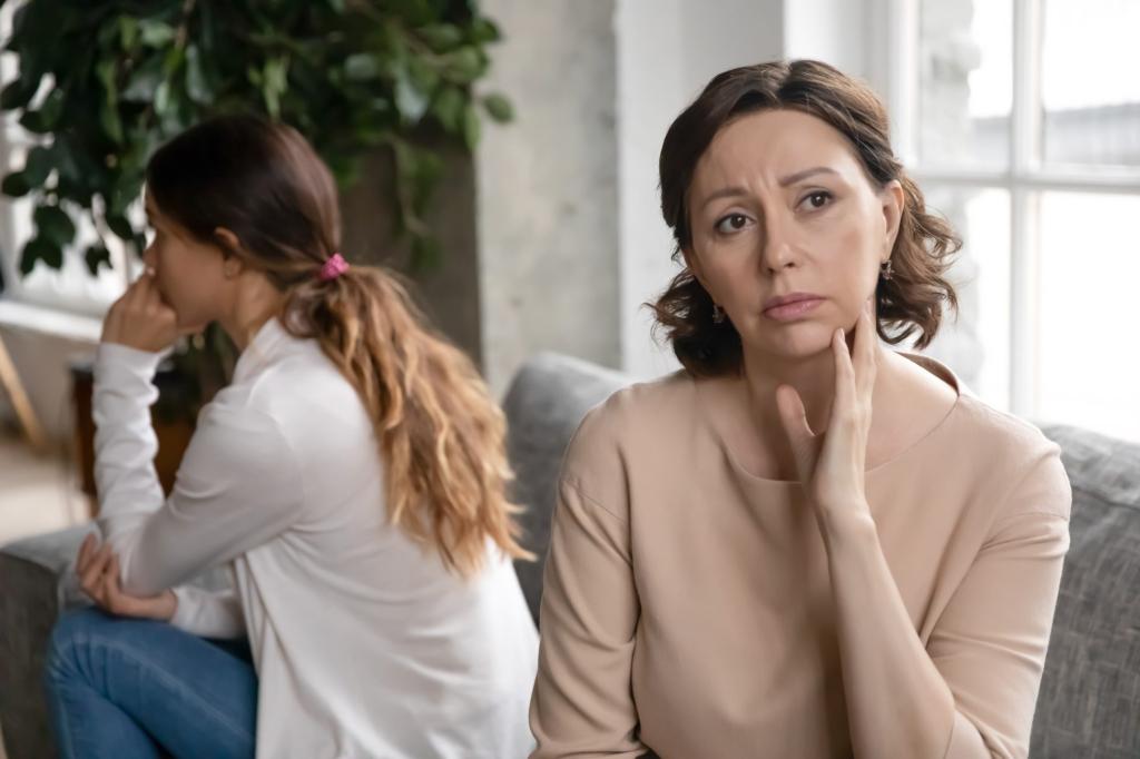 He molded the mother and an adult daughter ignoring after a family dispute, illustrating a generation gap concept