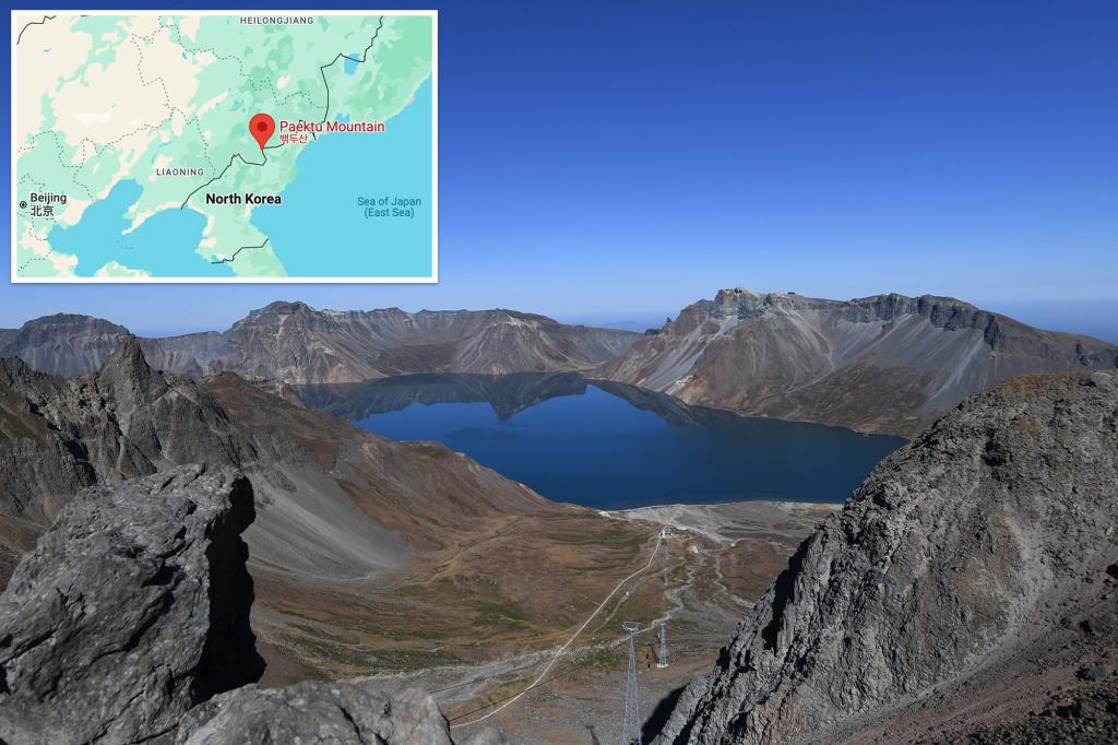 Mount Paektu is on the border of North Korea and China. Google Maps