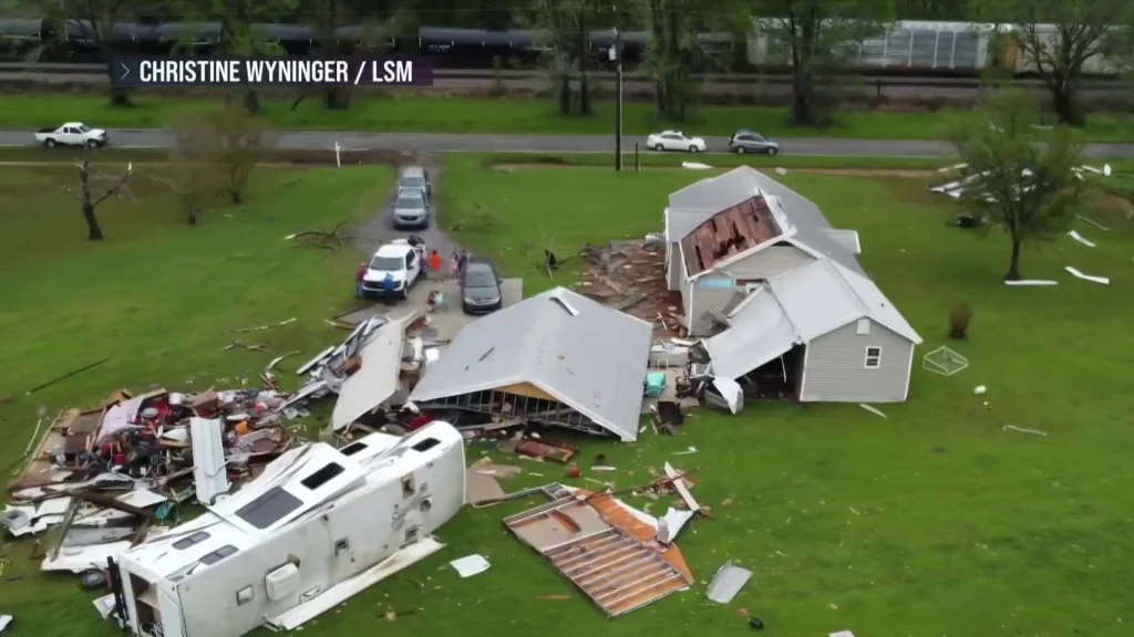 Four people were killed in Michigan, two died in Indiana and one person was killed in Oklahoma, officials said. An EF-2 tornado in St. Landry Parish, Louisiana, on Monday ripped the home off a roof but caused no injuries.